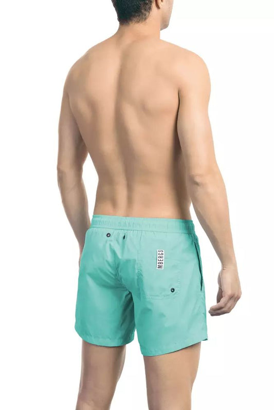 Bikkembergs Sleek Light Blue Swim Shorts with Front Print