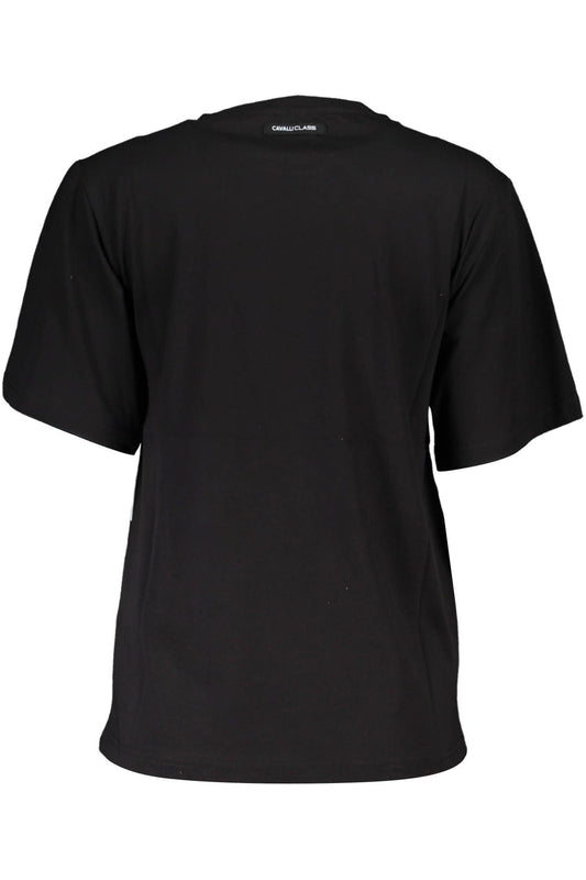 Cavalli Class Elegant Round Neck Black Tee with Classic Print