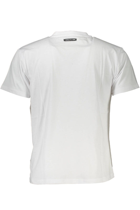 Cavalli Class Elegant Printed White Tee with Designer Flair