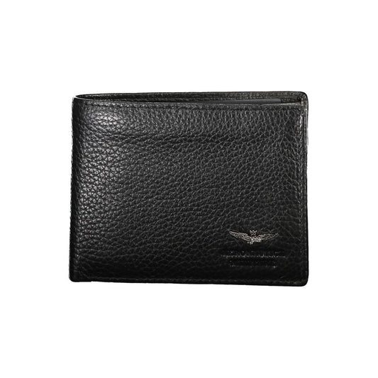 Aeronautica Militare Sleek Black Leather Dual Compartment Wallet