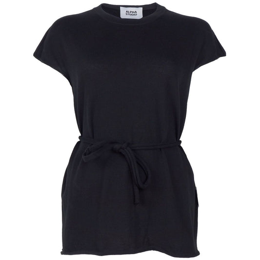 Alpha Studio Chic Brown Side-Slit Sweater with Button Details