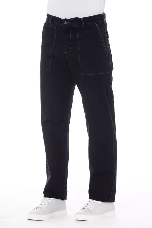 Alpha Studio Chic Blue Cotton Pants with Contrast Stitching