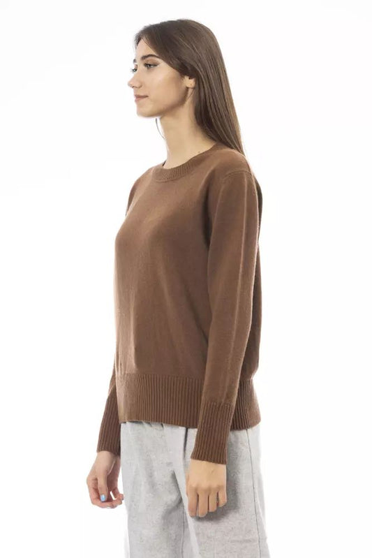 Alpha Studio Cashmere Crew Neck Sweater in Rich Brown