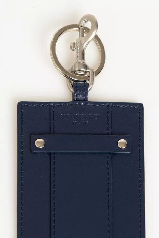 Trussardi Elegant Blue Leather Badge Holder with Key Ring