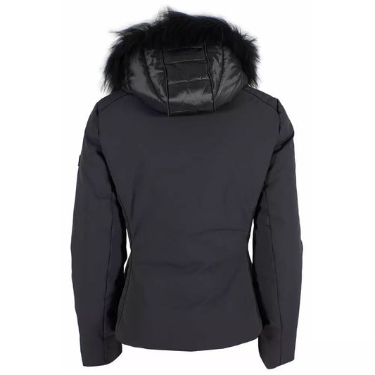 Yes Zee Elegant Black Nylon Jacket with Murmasky Fur