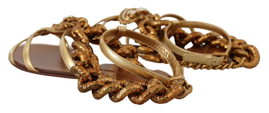 Dolce & Gabbana Chic Gladiator Flats with Heart and Chain Accents