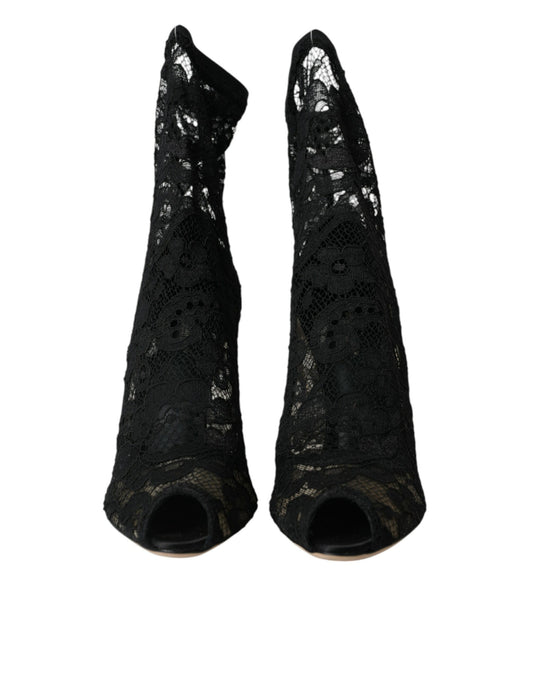 Dolce & Gabbana Black Stretch Taormina Lace Boots Shoes