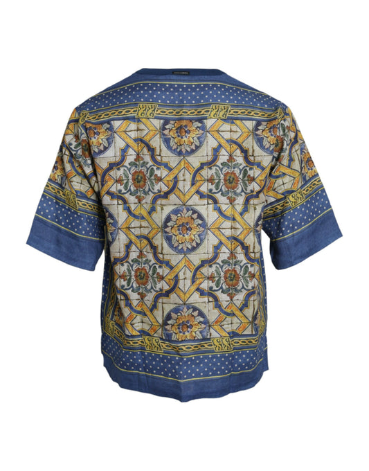 Dolce & Gabbana Multicolor Majolica Linen Short Sleeve T-shirt