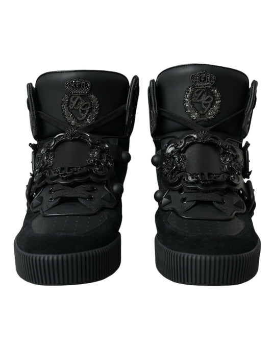 Dolce & Gabbana Black Logo Leather Miami High Top Sneakers Shoes