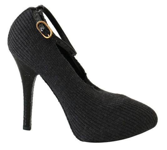 Dolce & Gabbana Black Leather Heels Fabric Socks Pumps Shoes
