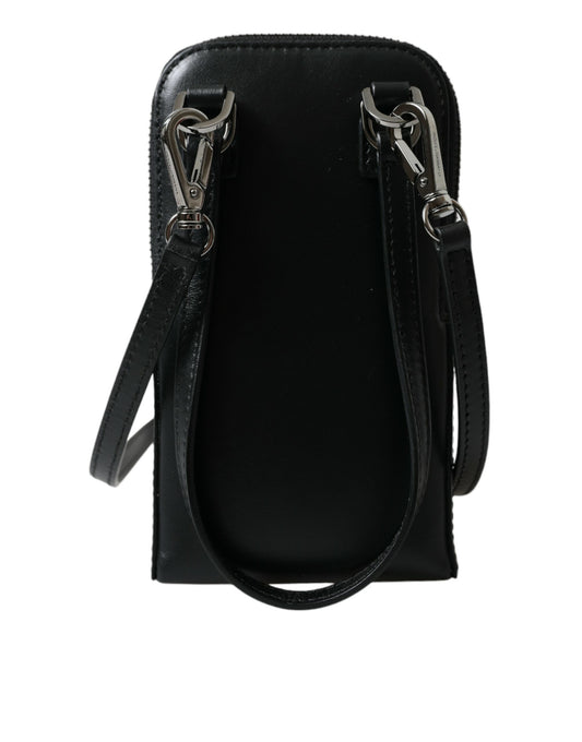 Dolce & Gabbana Black Calf Leather Zip Logo Shoulder Neck Strap Wallet