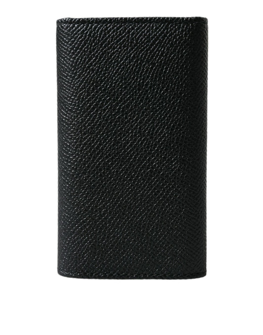 Dolce & Gabbana Black Calf Leather Logo Plaque Trifold Keyring Key Holder