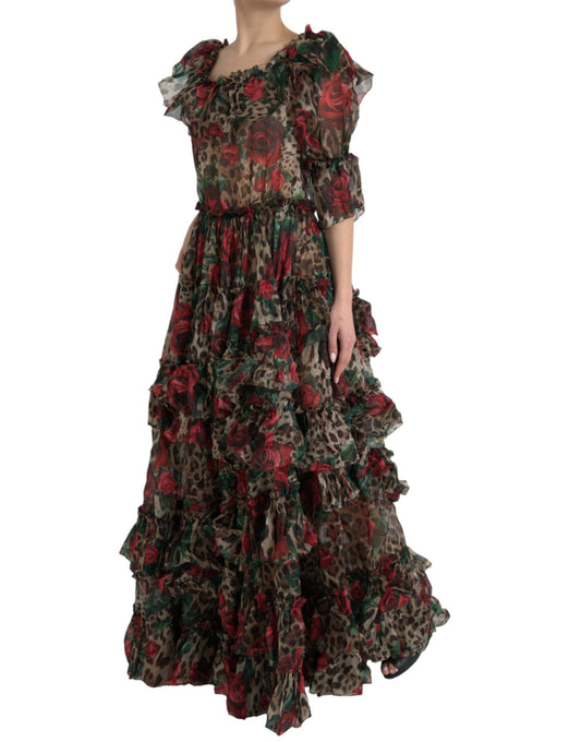 Dolce & Gabbana Ethereal Floral & Leopard Print Maxi Gown