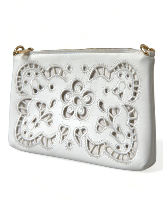 Dolce & Gabbana Embroidered Floral Leather Clutch with Chain Strap