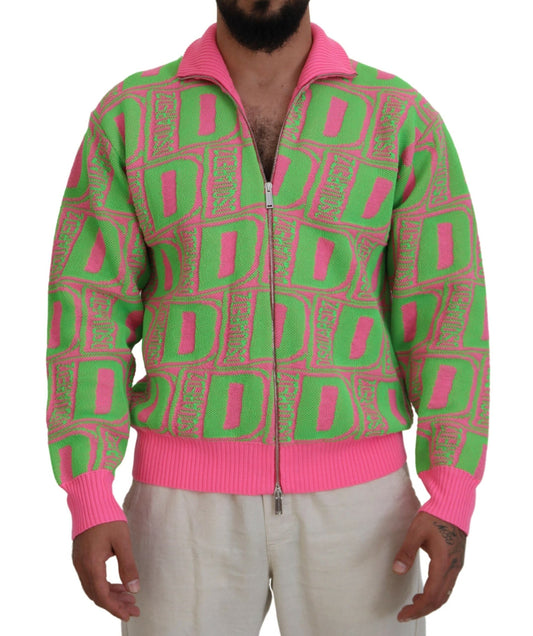 Dsquared² Pink Green Collared Long Sleeves Full Zip Sweater