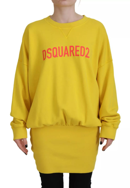 Dsquared² Yellow Logo Print Cotton Crewneck Pullover Sweater