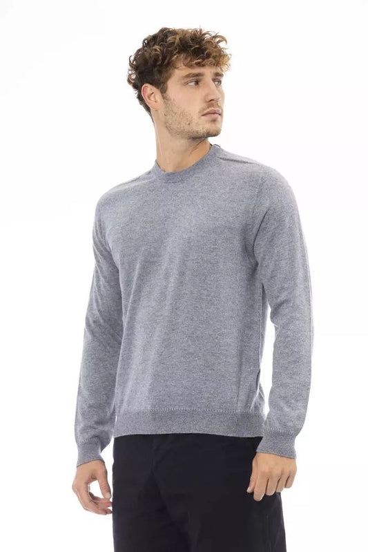 Alpha Studio Sleek Gray Crewneck Sweater for Men