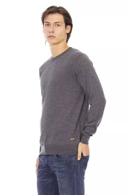 Baldinini Trend Elegant Gray Crewneck Sweater with Metal Monogram