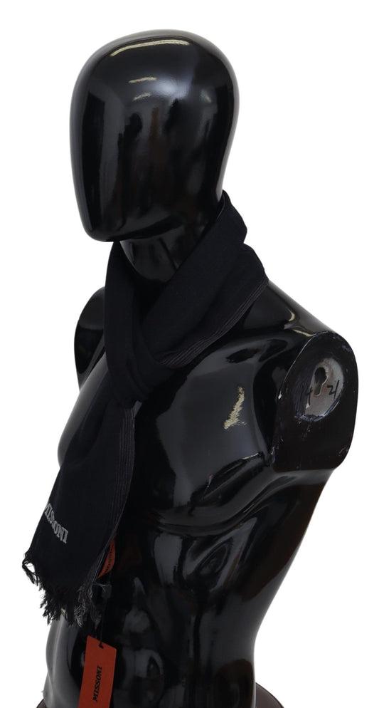 Missoni Black Striped Wool Unisex Neck Wrap Scarf