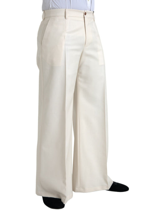 Dolce & Gabbana White Wool Wide Leg Mid Waist Pants