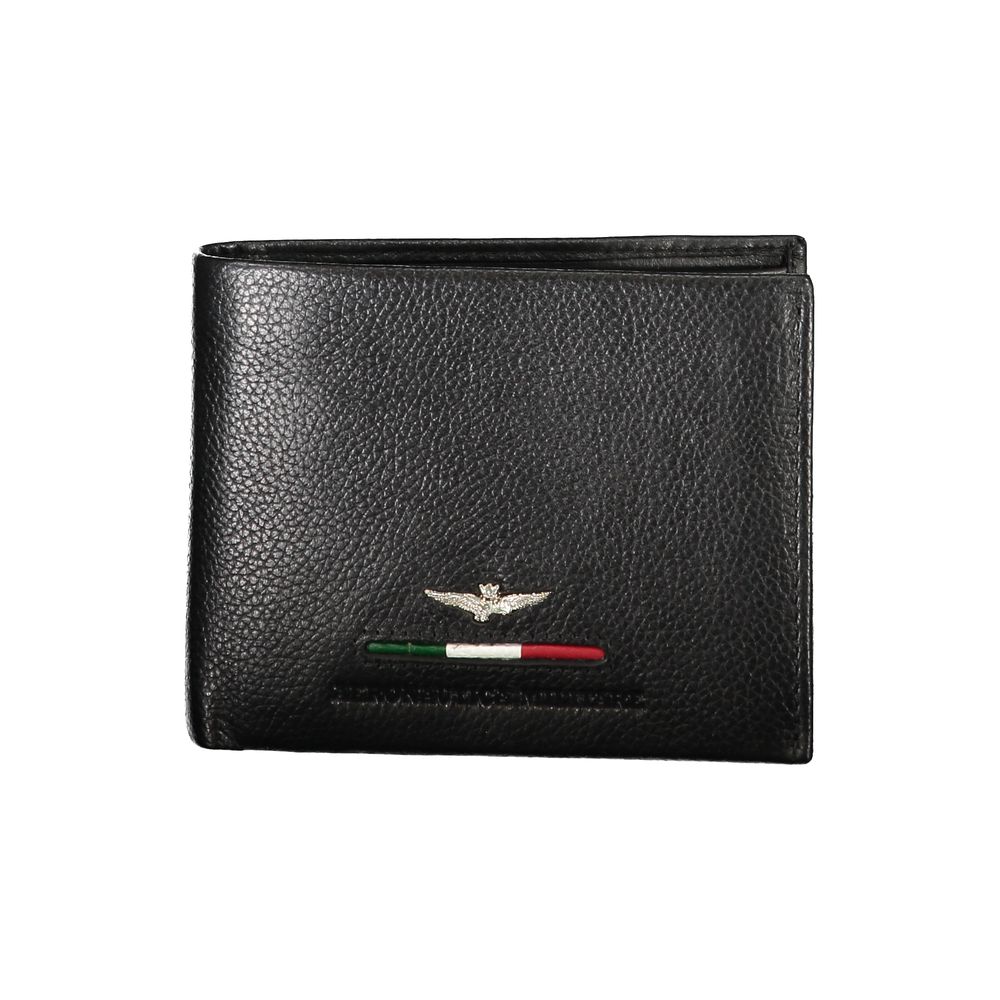 Aeronautica Militare Elegant Black Leather Two-Compartment Wallet