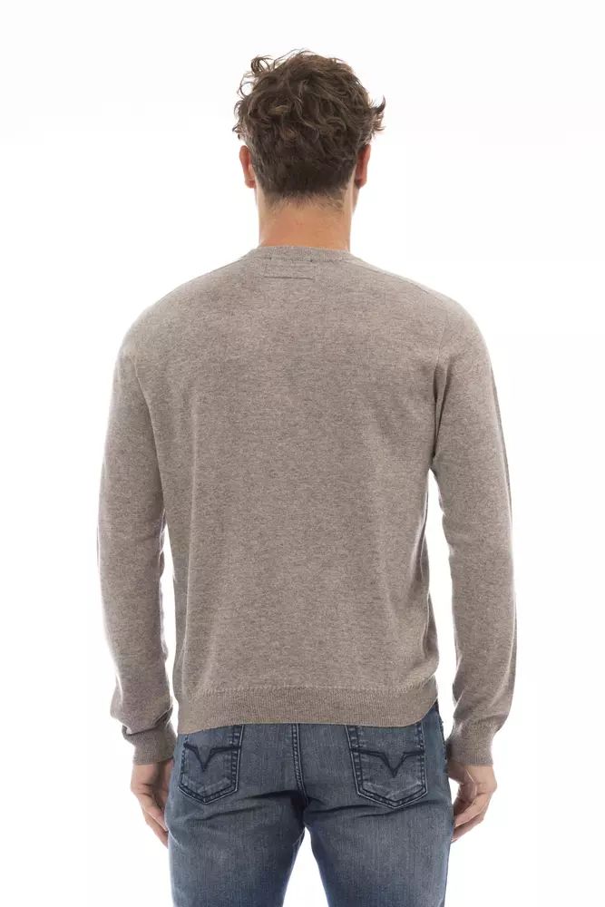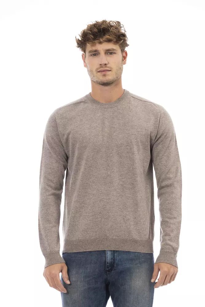 Alpha Studio Beige Crewneck Sweater in Luxe Wool-Cashmere Blend