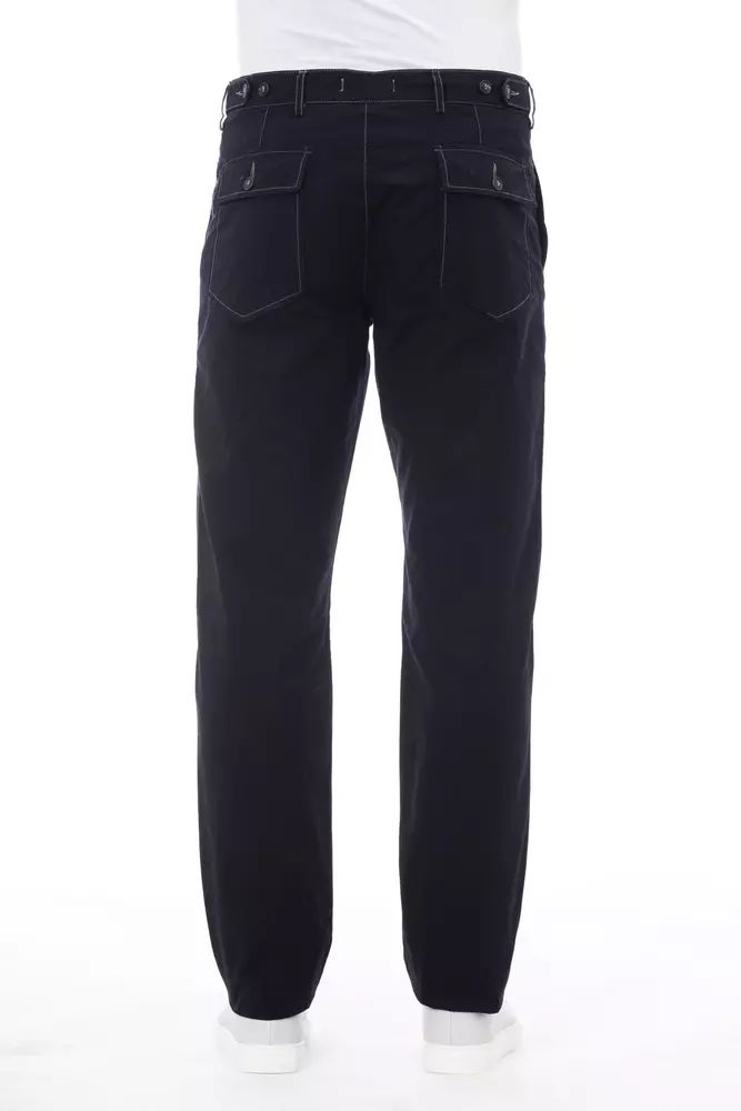 Alpha Studio Chic Blue Cotton Pants with Contrast Stitching