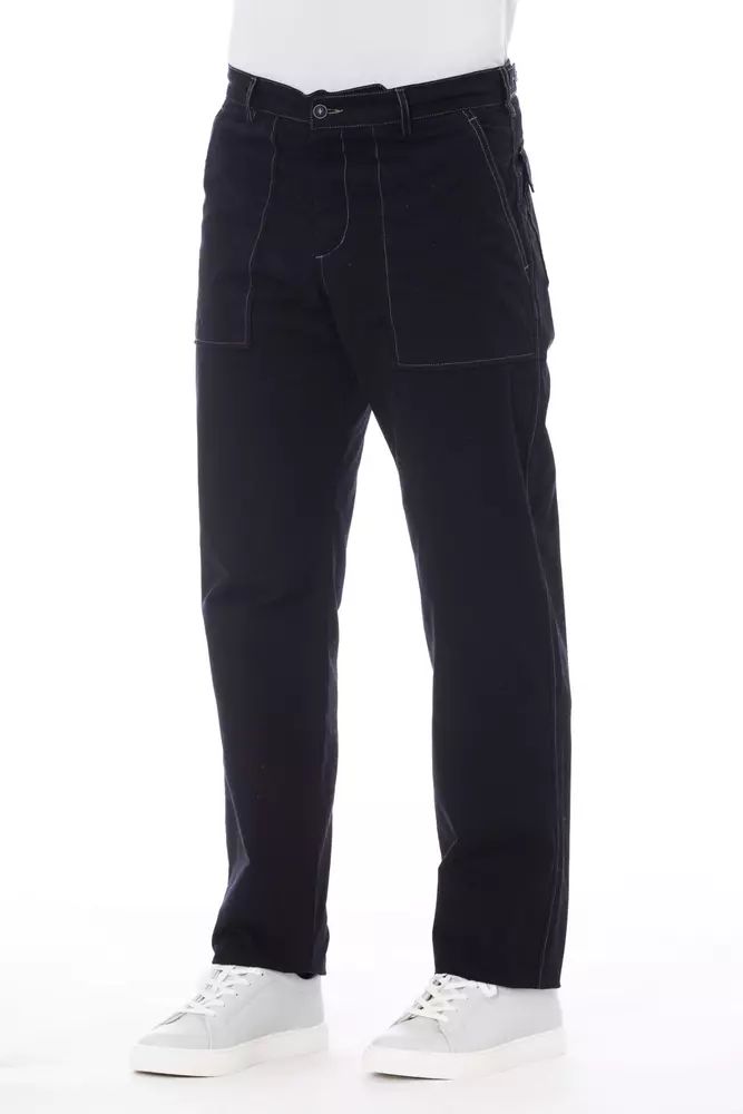 Experience the perfect blend of style and comfort with Alpha Studio’s finely crafted blue pants. Designed with meticulous attention to detail, they feature front and back pockets complemented by striking contrasting stitching, ensuring both functionality and fashion. A versatile addition to your wardrobe, these pants are ideal for a range of occasions, from casual outings to smart-casual events.