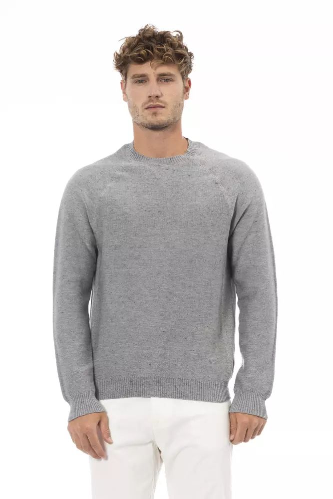 Alpha Studio Chic Gray Cotton-Cashmere Crewneck Sweater