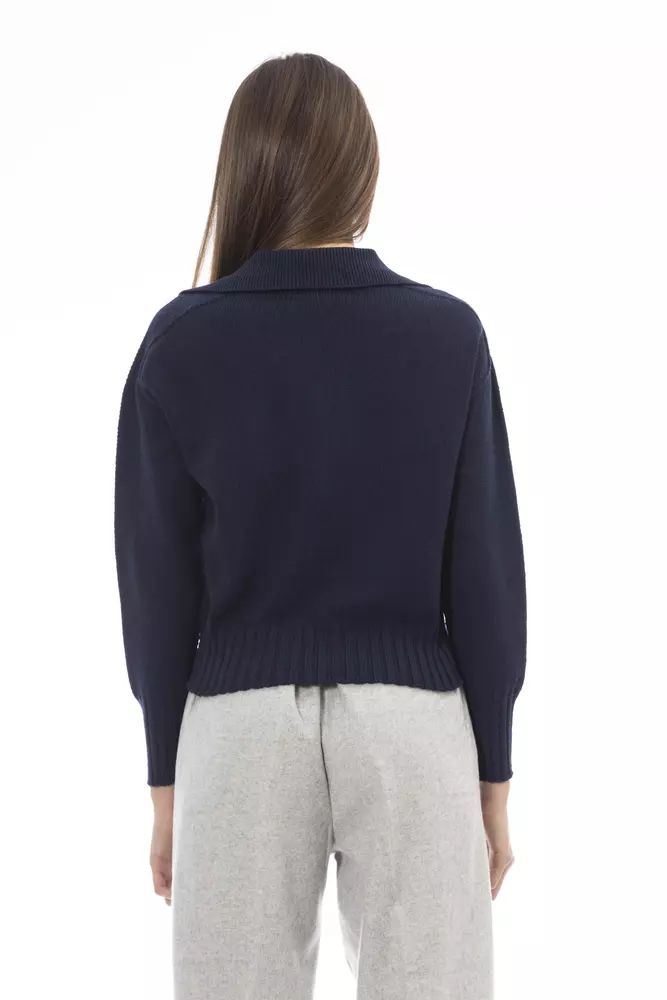 Alpha Studio Chic V-Neck Wool Blend Sweater in Blue