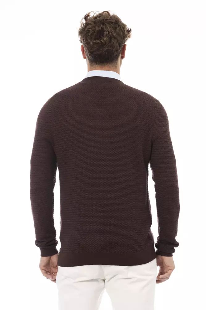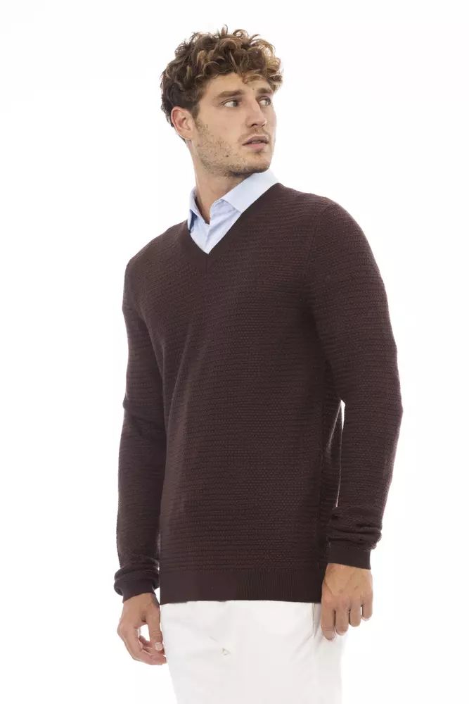 Alpha Studio Classic V-Neck Merino Wool Sweater - Sumptuous Brown