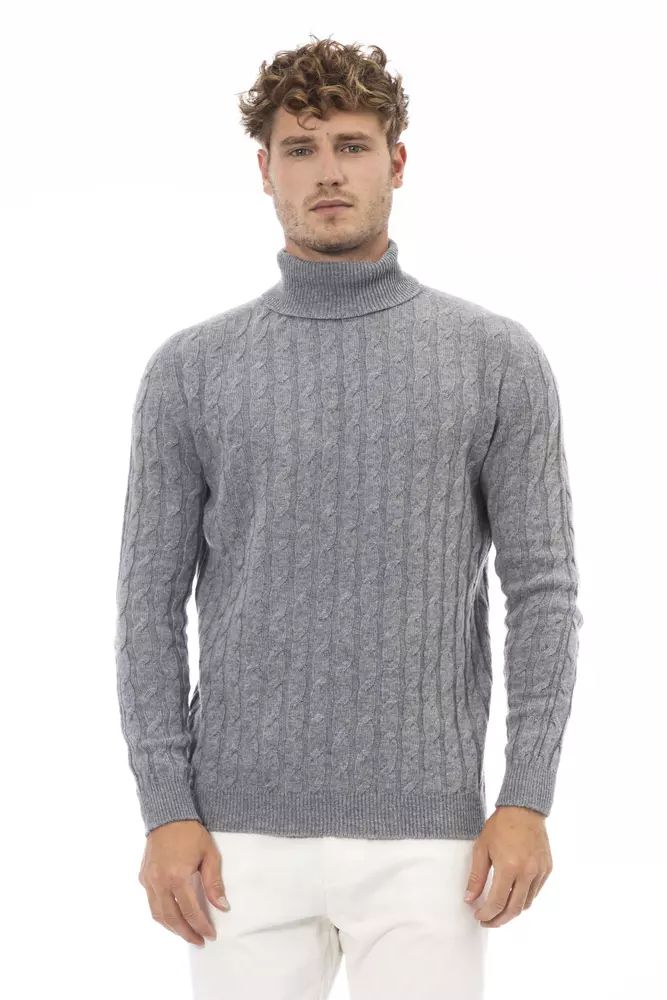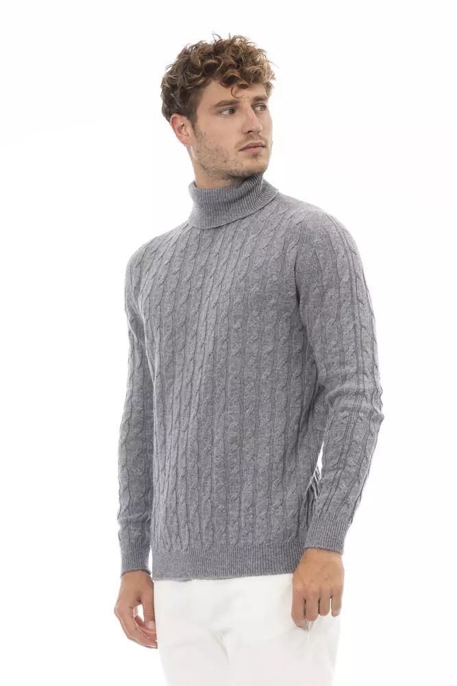 Alpha Studio Elegant Gray Turtleneck Sweater for Men