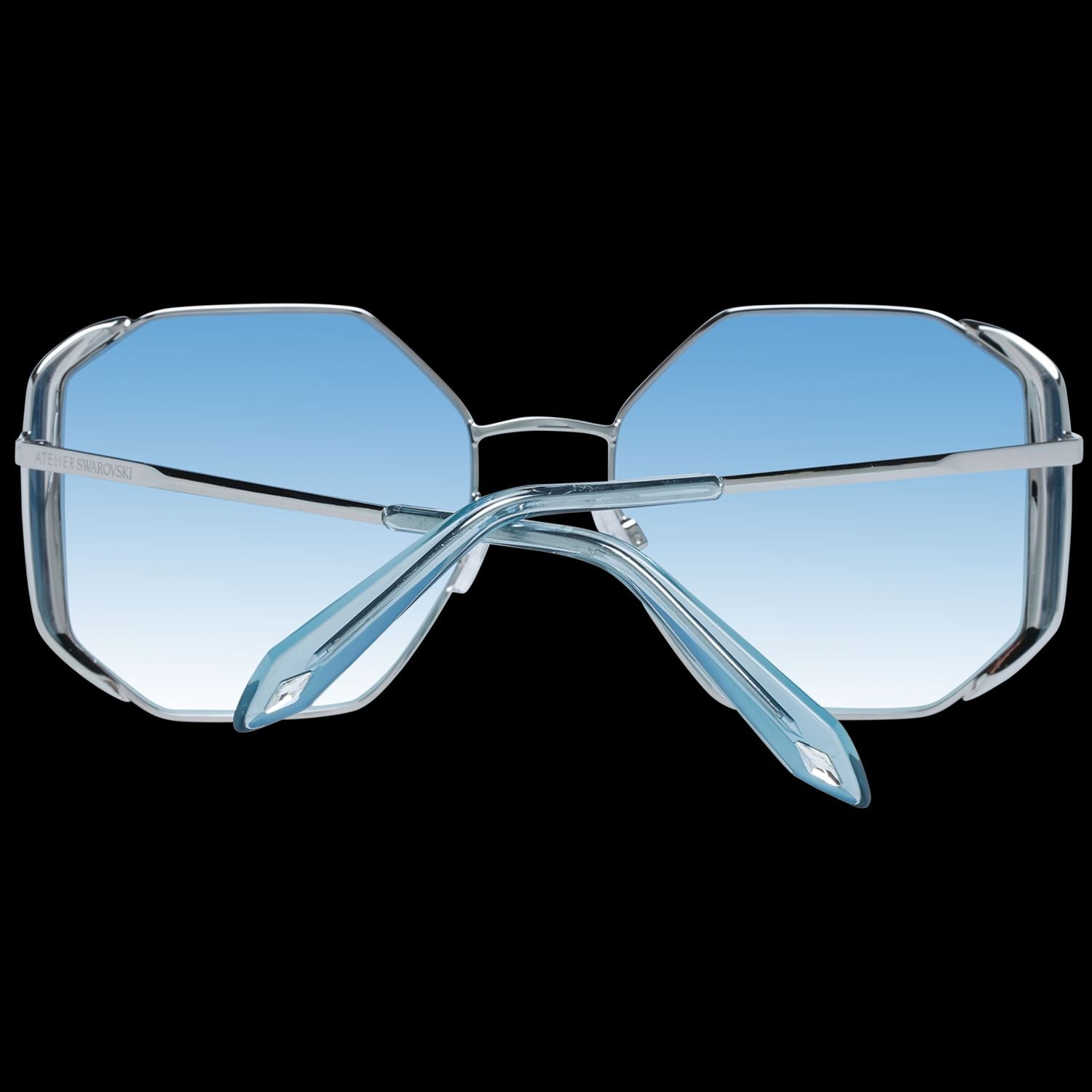 Exude sophistication with these Atelier Swarovski sunglasses, a perfect blend of high-end fashion and essential eye protection. A trapezium-shaped frame in a stunning silver hue pairs elegantly with the blue gradient lenses, offering 100% UVA & UVB protection for the style-conscious woman.