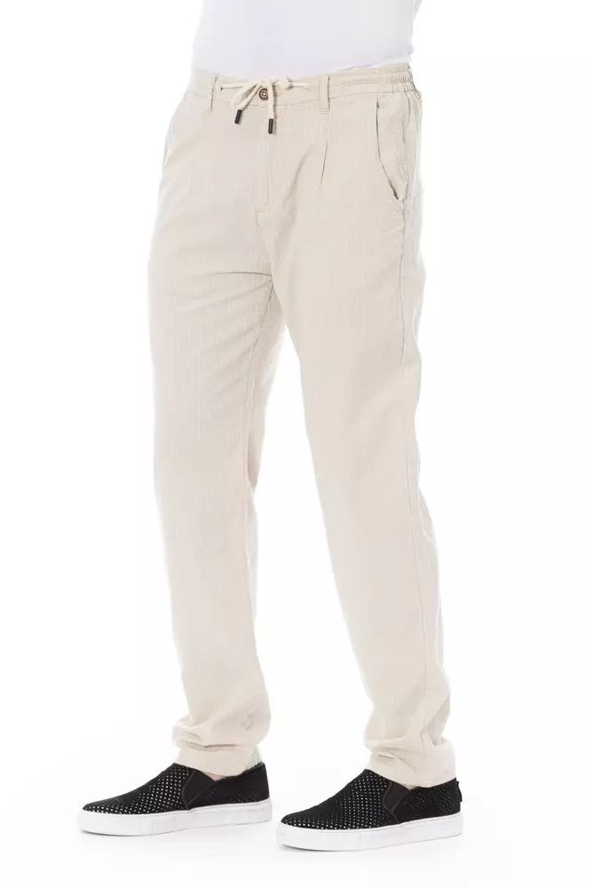Baldinini Trend Chic Beige Cotton Chino Trousers with Drawstring