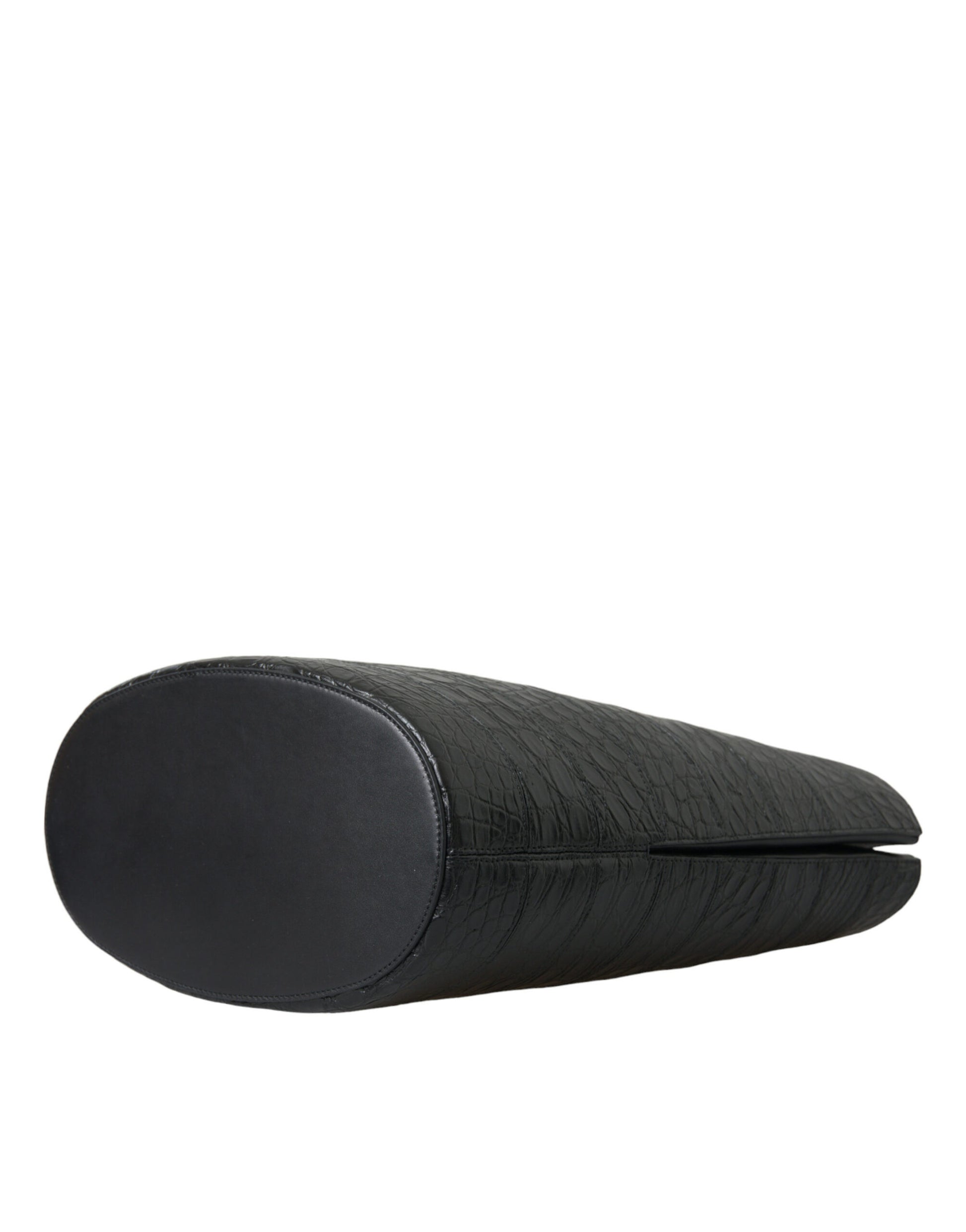 Balenciaga Elegant Black Crocodile Leather Maxi Bucket Bag