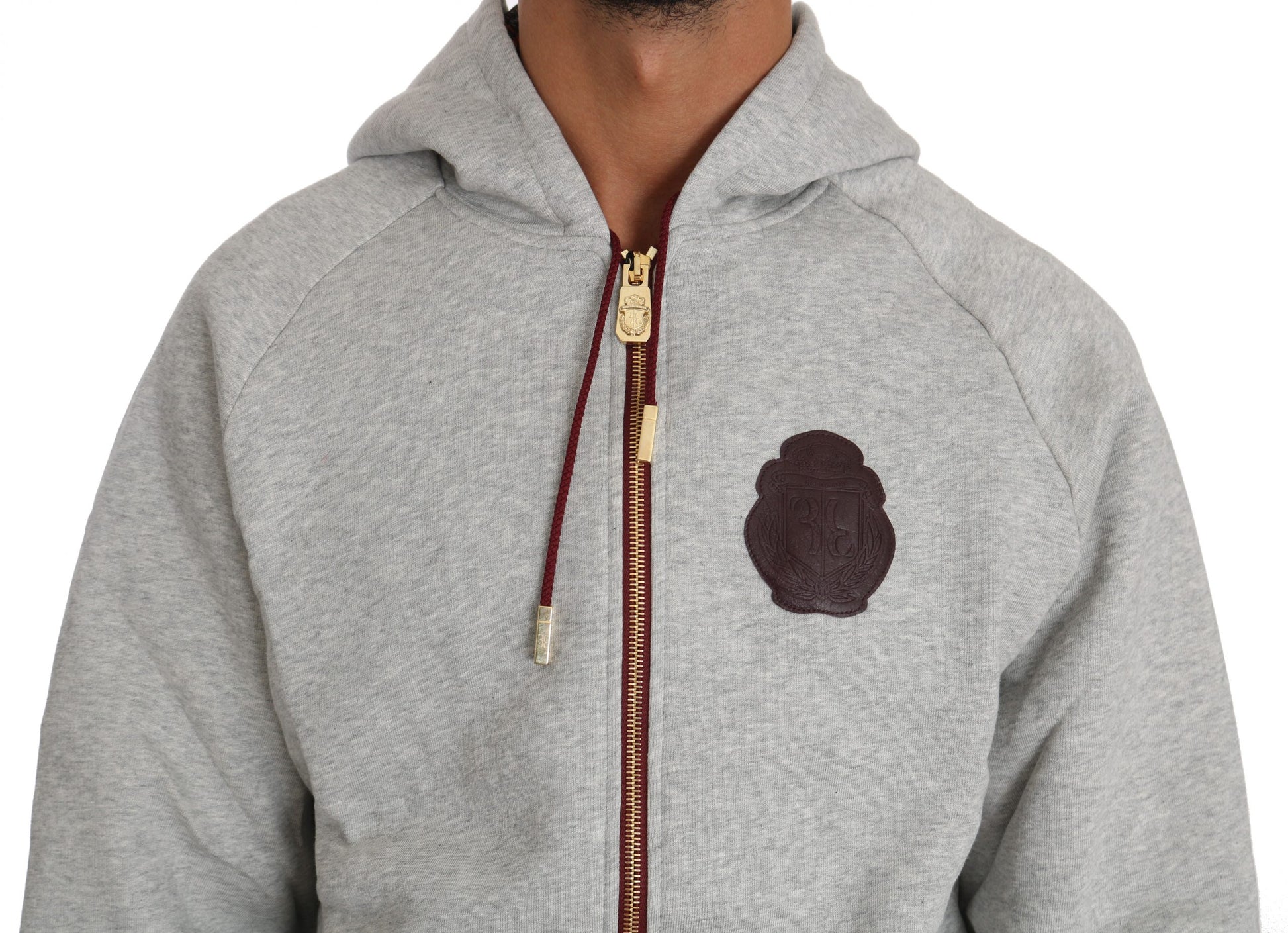 Indulge in the epitome of luxury loungewear with this stunning gray sweatsuit from Billionaire Italian Couture. Crafted from the finest 100% cotton, this sophisticated set ensures a perfect blend of comfort and style. The full-zip sweater features a hooded neck with a patterned lining, long raglan sleeves, and ribbed cuffs & hem. Detailed with a logo patch on the chest and custom branded accents, it elevates casualwear to new heights. The matching pants boast an elasticated, adjustable waist, adding convenience to elegance, while the seamless front design gives a sleek finish. Made with unmatched Italian craftsmanship, make a bold fashion statement even in your relaxed moments.