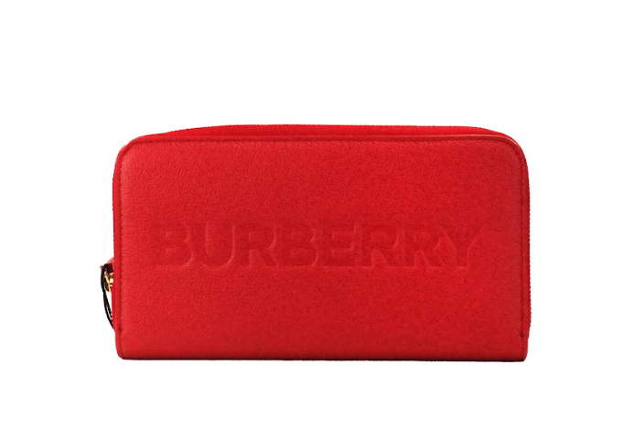 Burberry Elmore Red Embossed Logo Leather Continental Clutch Wallet