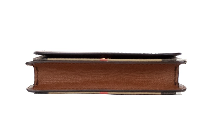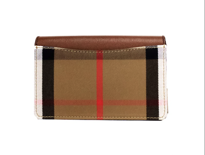Burberry Hampshire Small House Check Canvas Tan Derby Leather Crossbody Bag