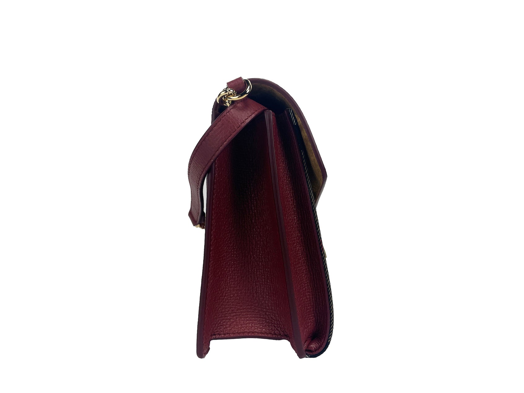 Features: Check Print, Gold hardware, Crimson, Interior Zip Pocket