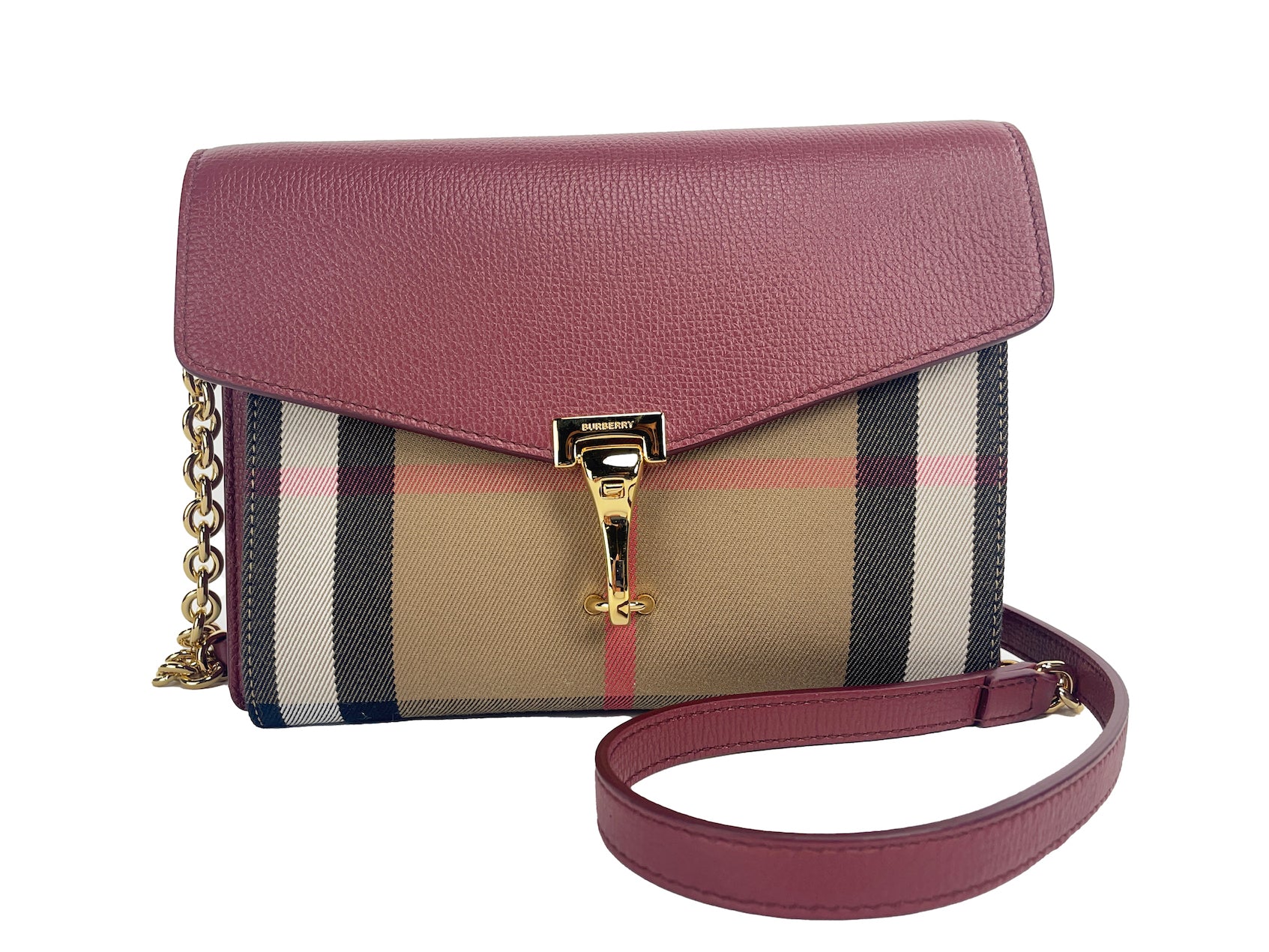 Burberry Macken Small Crimson House Check Leather Crossbody Bag