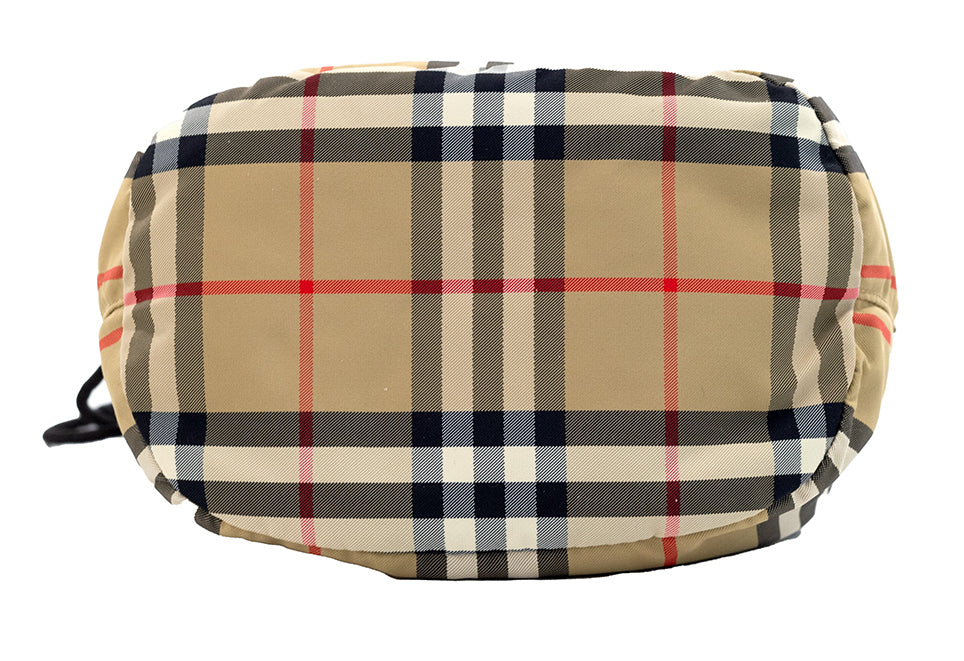 Style: Burberry Phoebe Small Heritage Sripe Nylon Drawstring Bucket Bag