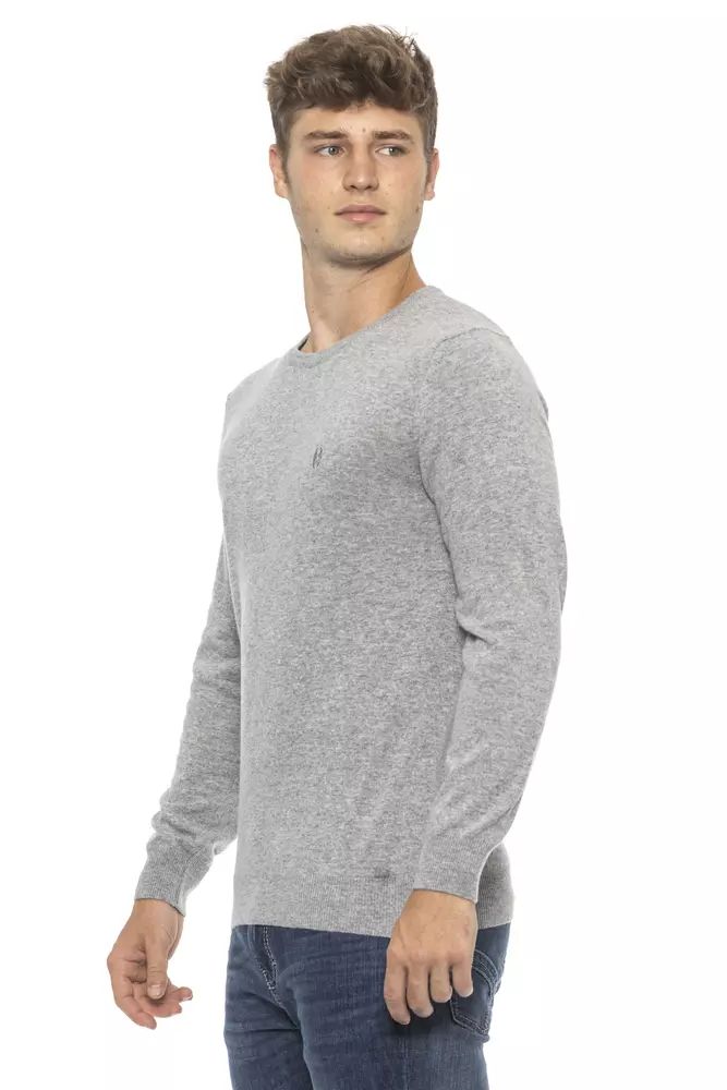 Conte of Florence Elegant Silver Crew Neck Men's Sweater