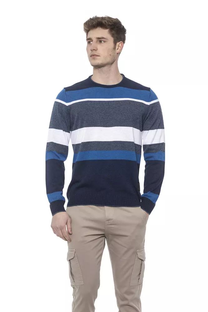 Conte of Florence Elegant Striped Crewneck Sweater in Blue