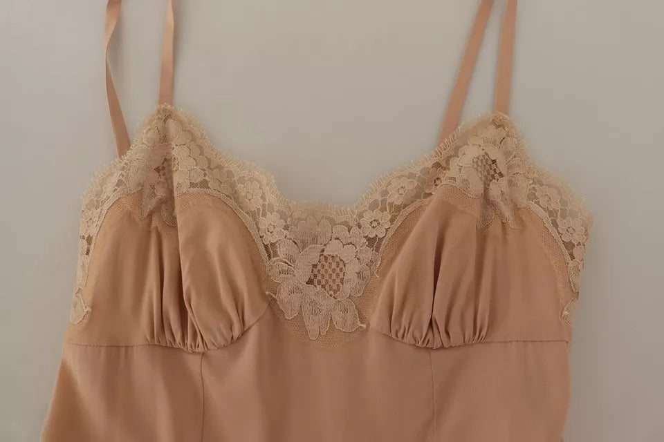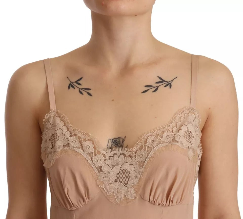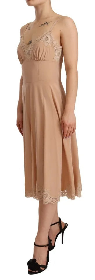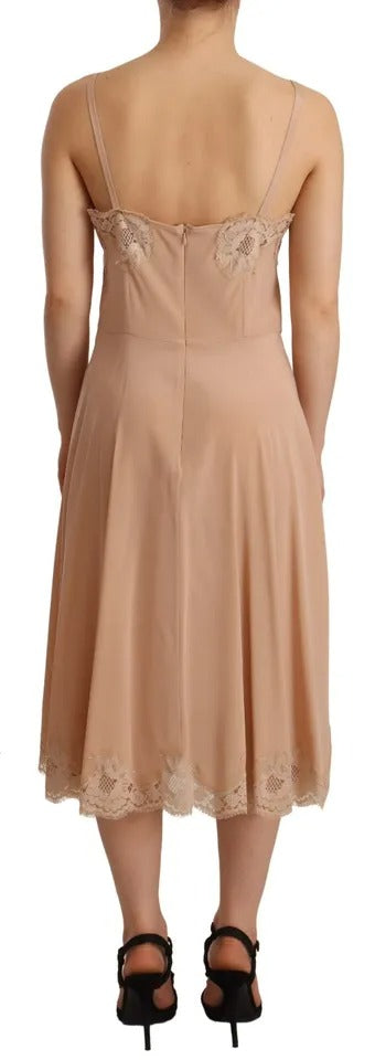 Dolce & Gabbana Beige Lace A-line Spaghetti Strap Midi Dress