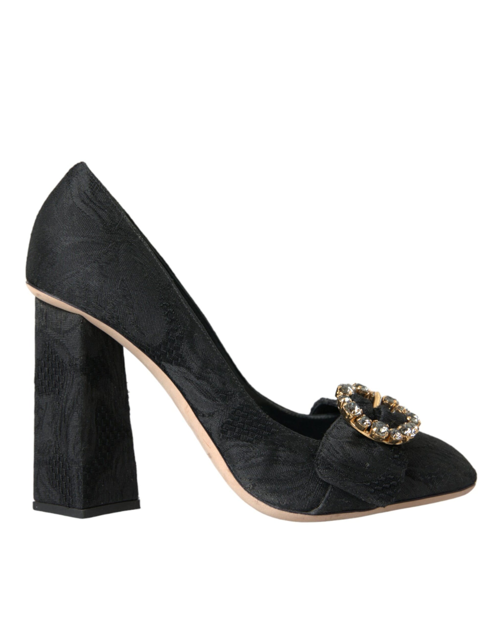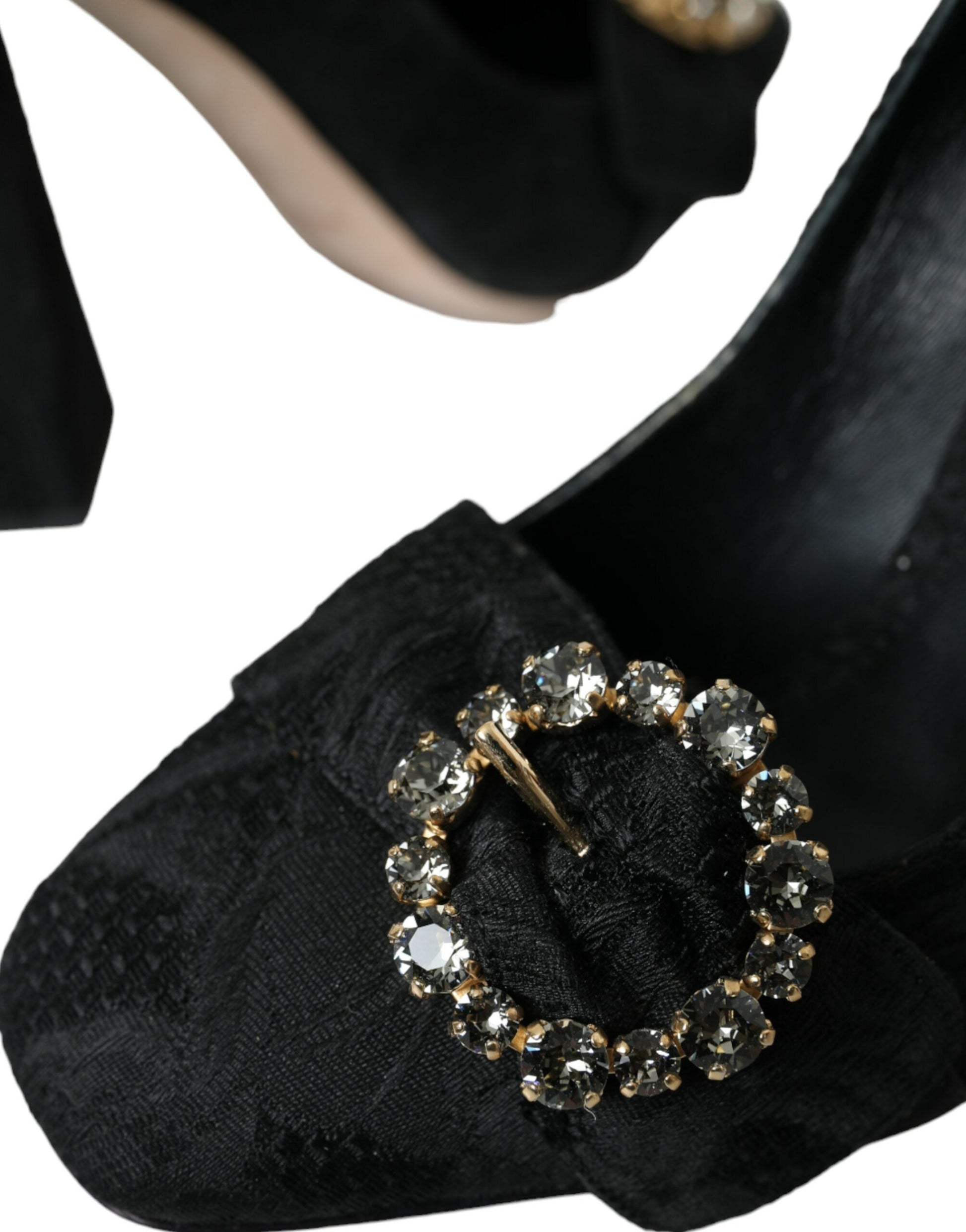 Dolce & Gabbana Black Brocade Crystals Heels Pumps Shoes