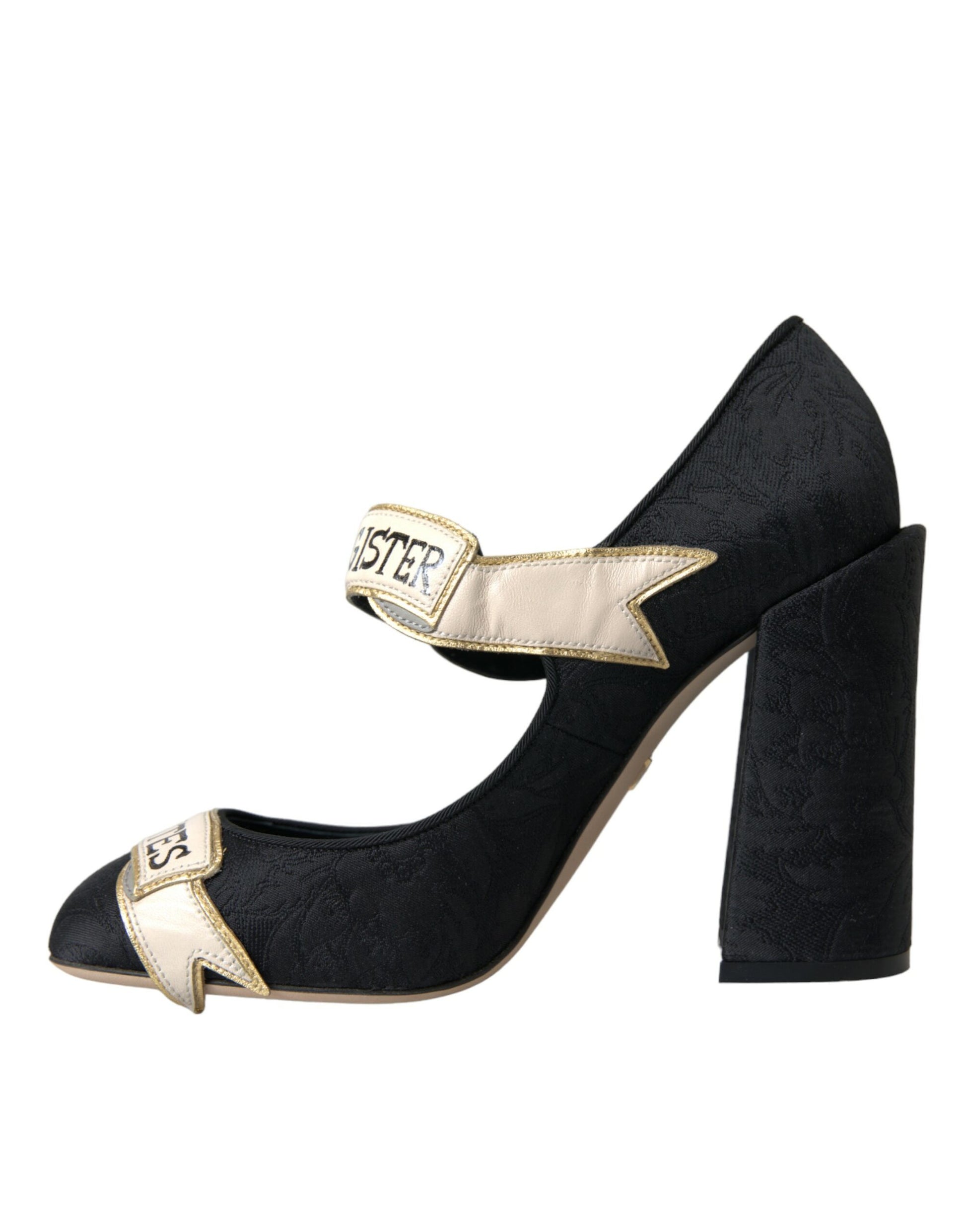 Dolce & Gabbana Black Brocade Mary Janes Crystal Pumps Shoes