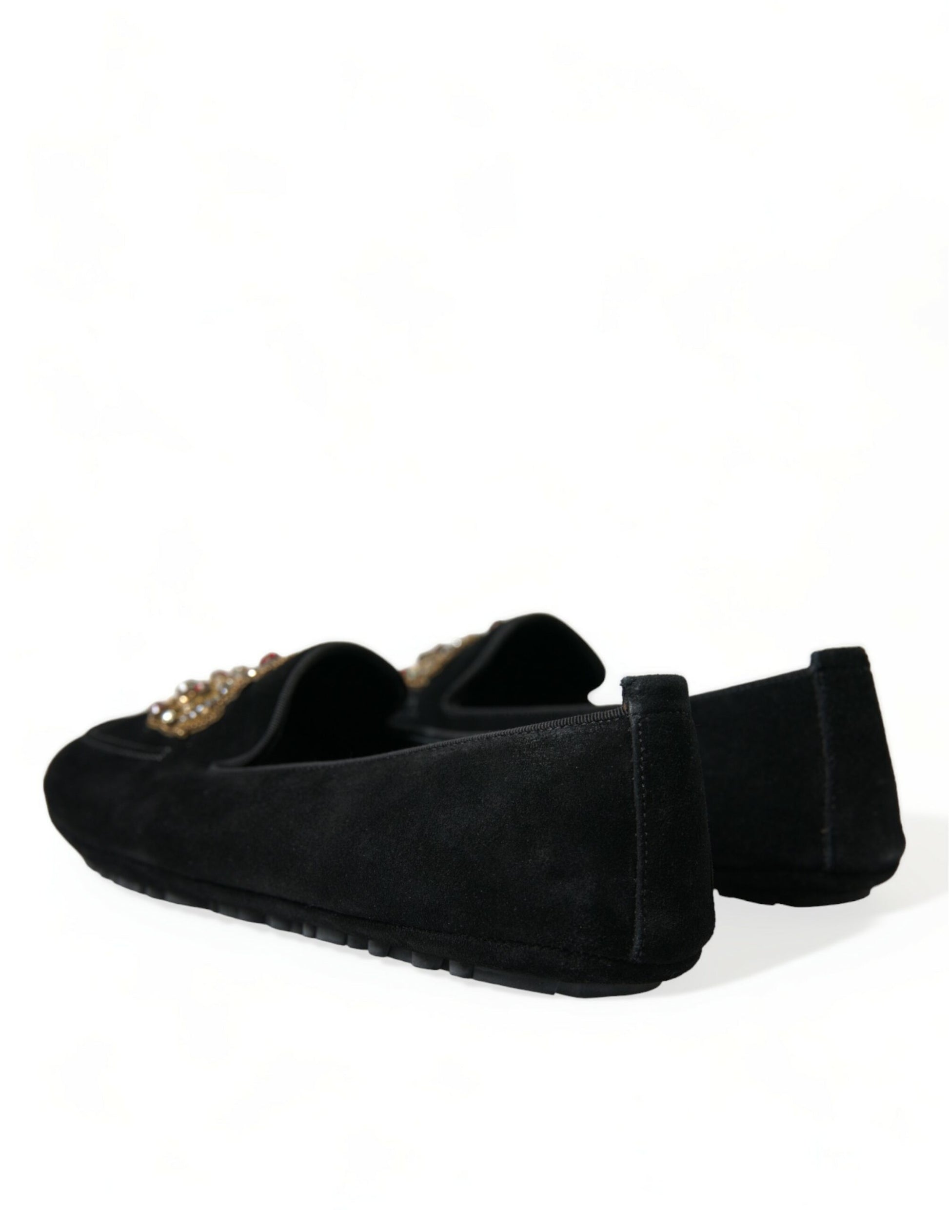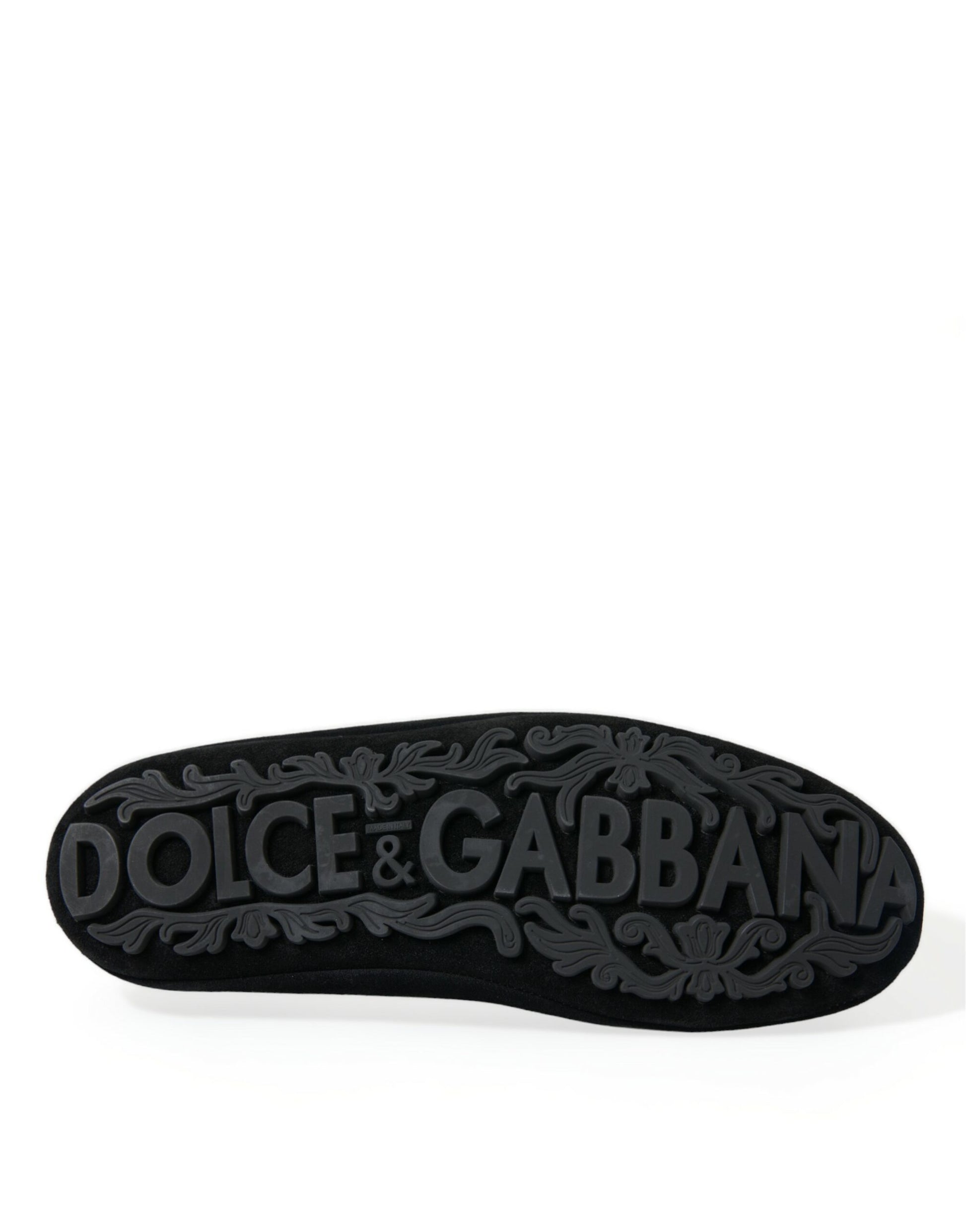 Dolce & Gabbana Black Calfskin Loafers with Crystals