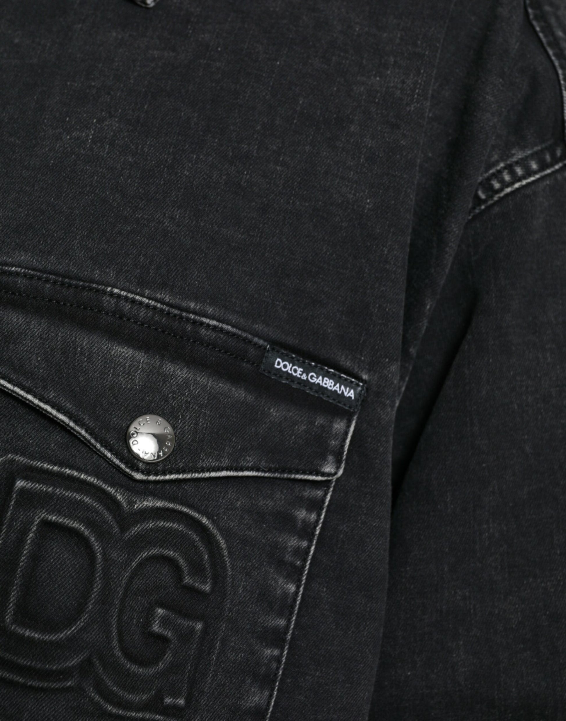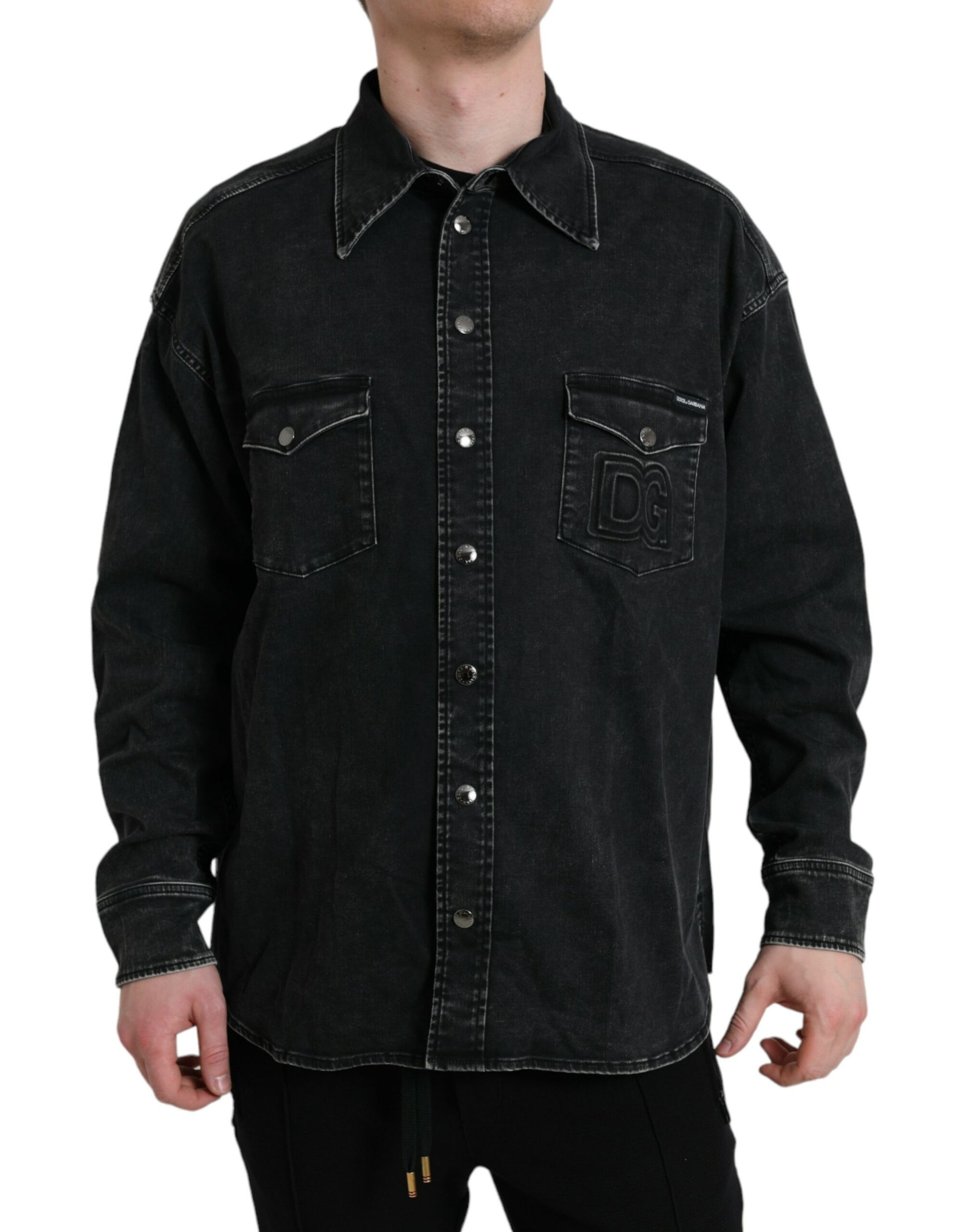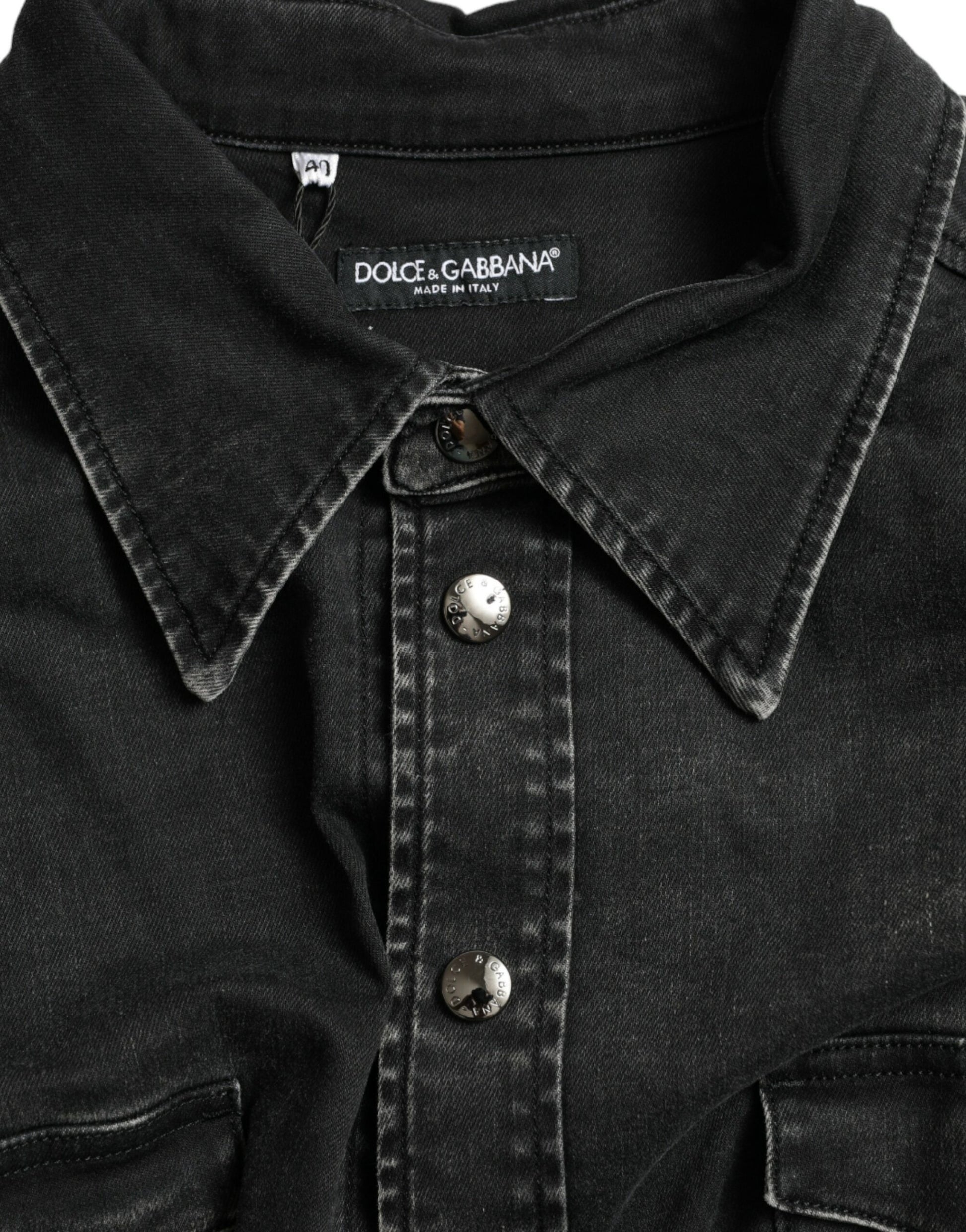 Dolce & Gabbana Black Cotton Long Sleeve Denim Casual Shirt