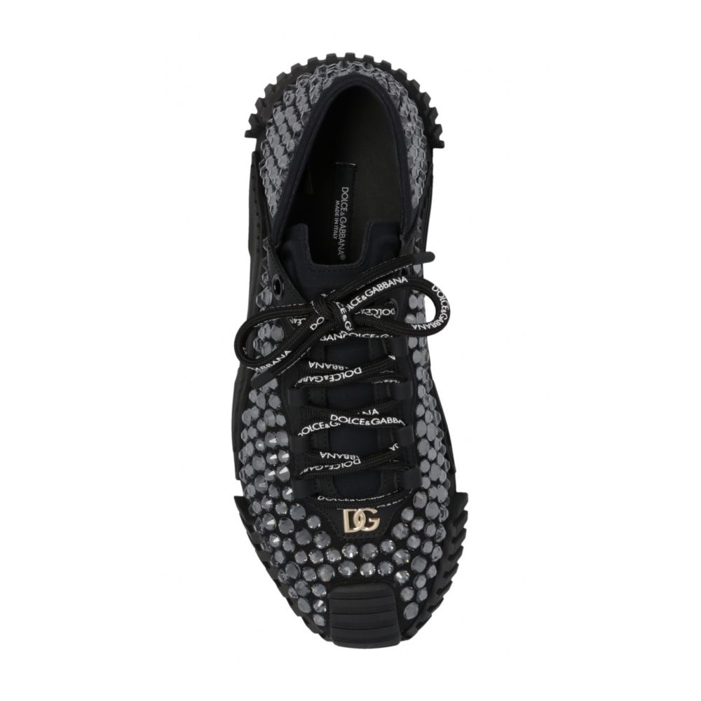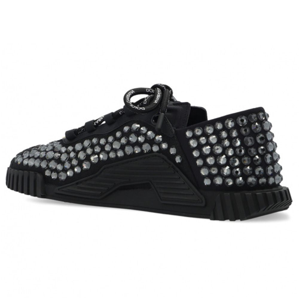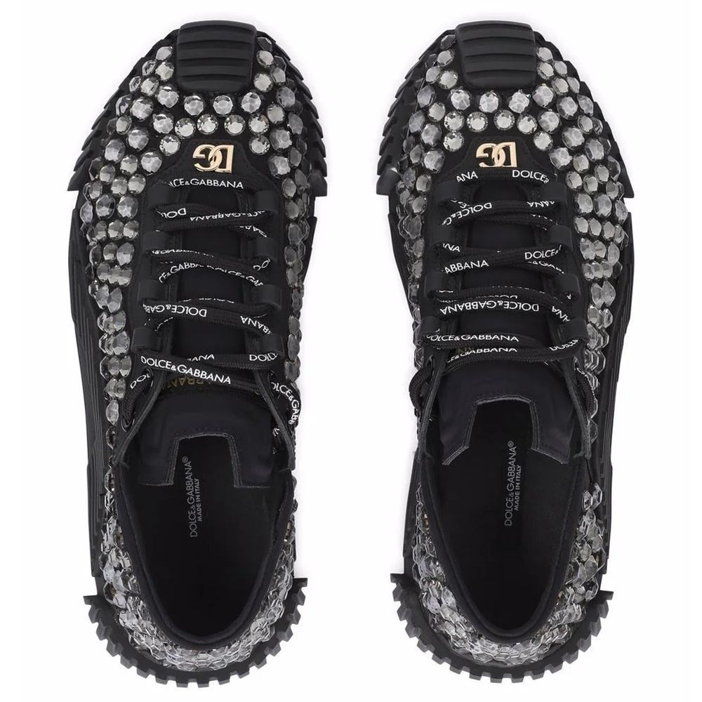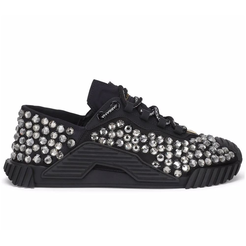 Dolce & Gabbana canvas low top sneakers covered with shimmering rhinestones throughout, gold front logo, black rubber sole