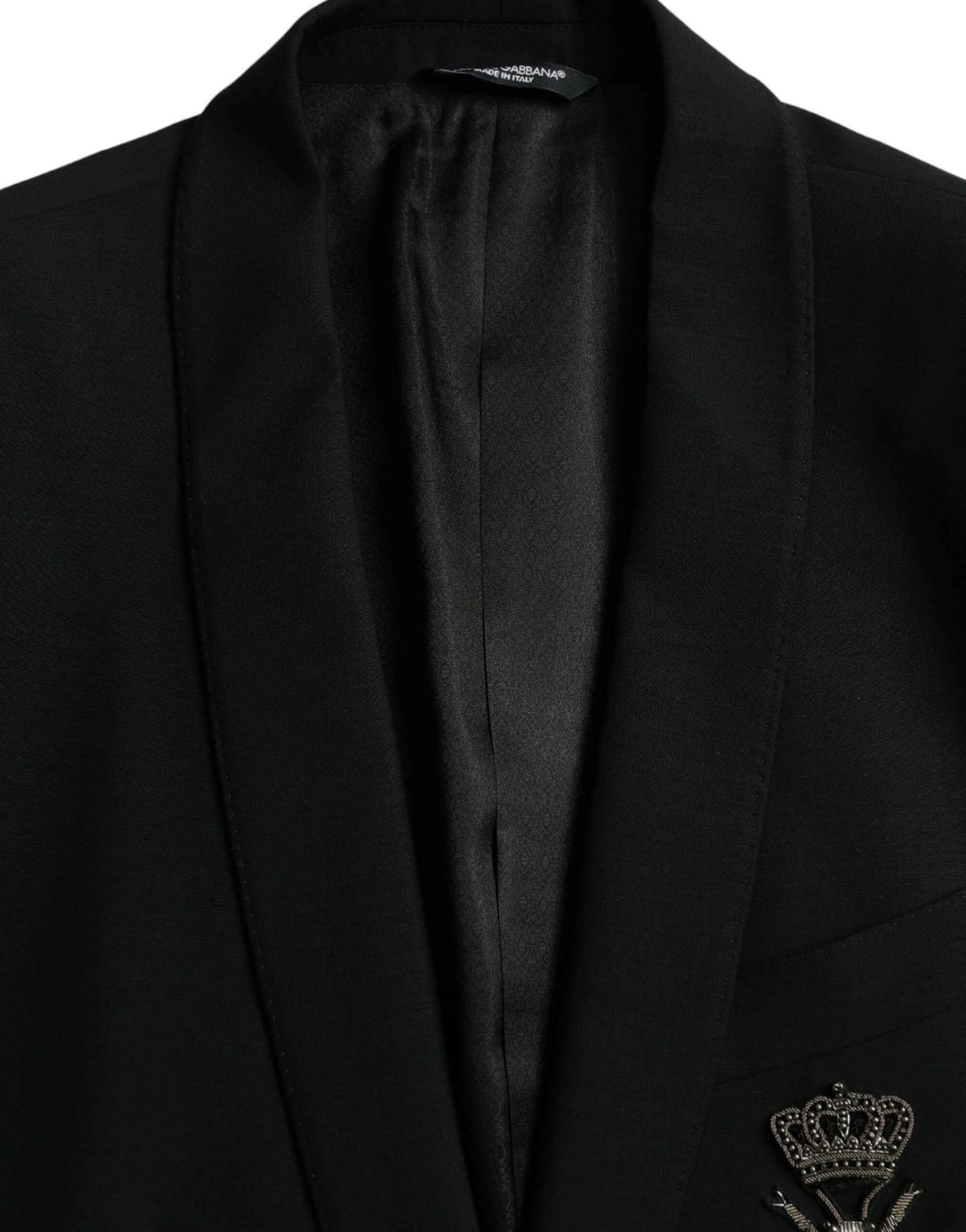 Dolce & Gabbana Black Crown Bee MARTINI Single Breasted Coat Blazer